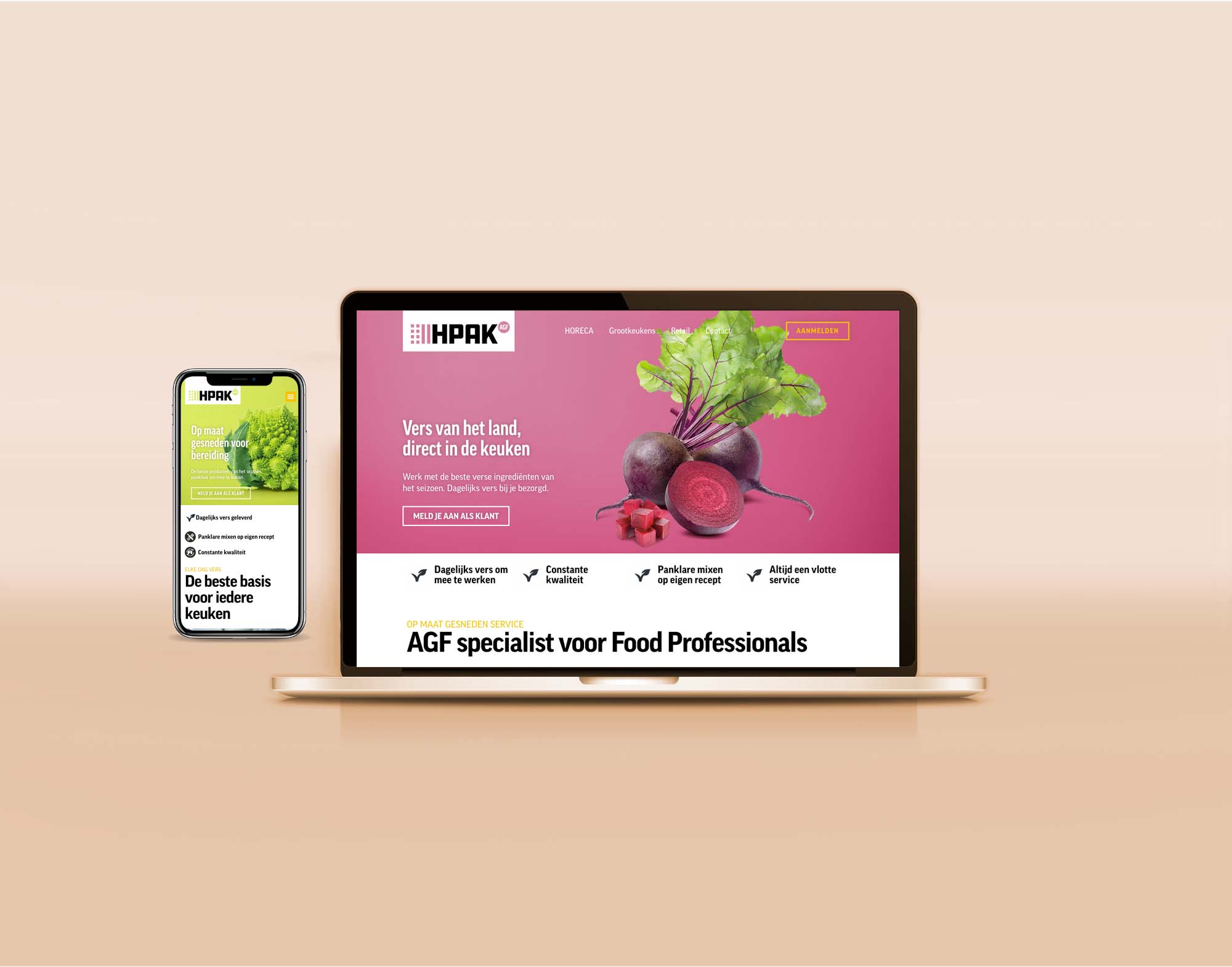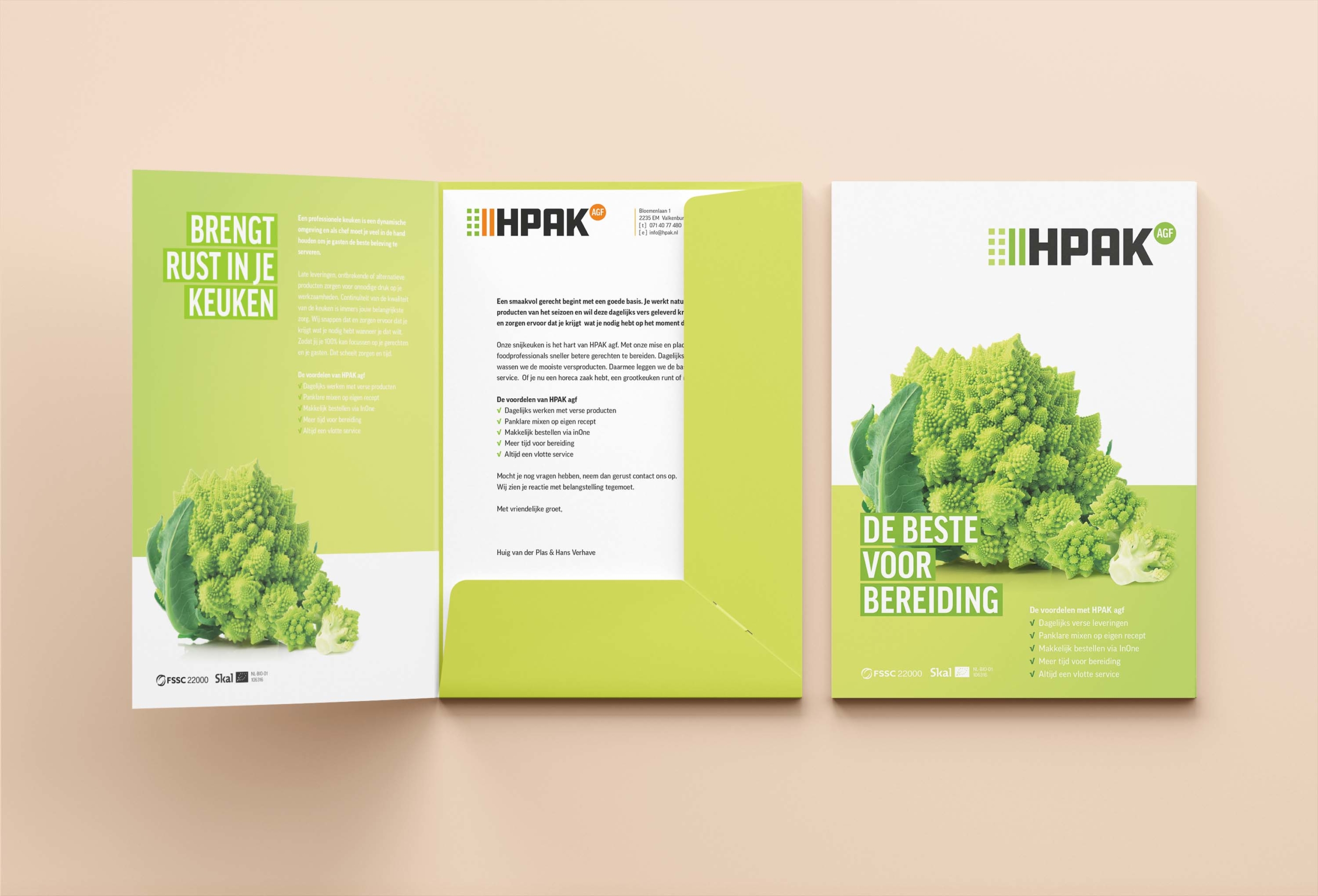 HPAK agf is een groente en fruit leverancier voor food professionals, horeca, retail en groothandel. Als specialist in het preparen van panklare op maat gesneden ingrediënten voor direct gebruik in de keuken bedienden zij voornamelijk grootkeukens en industriële maaltijdproducten. HPAK agf wil deze propositie en dienstverlening uitbreiden naar de horeca. Om deze nieuwe markt beter te bereiken was het tijd om de visuele identiteit en de dienstverlening van het bedrijf beter aan te laten sluiten bij deze nieuwe markt.